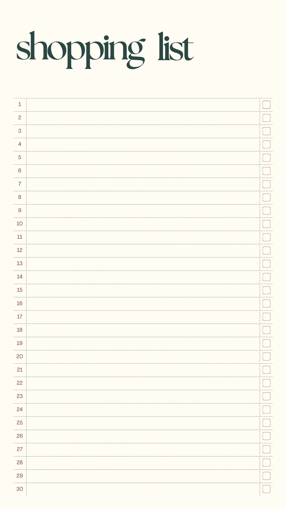 Utilize this shopping list to help brainstorm your grocery/ shopping necessities.